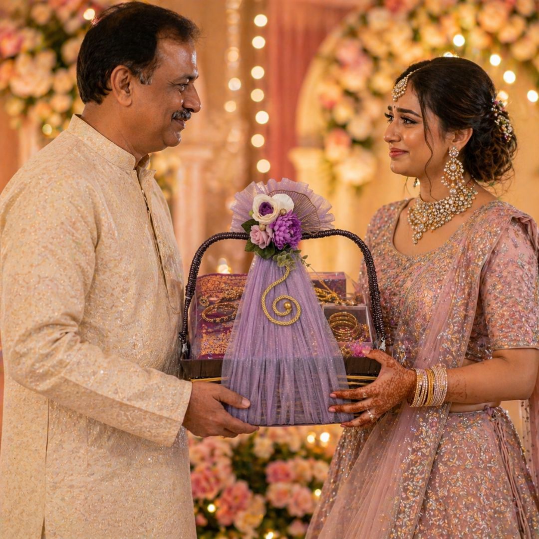 (Set of 3)Premium Lavender Net Gift Baskets with Floral Decor & Handle (16 x 12 Inches)